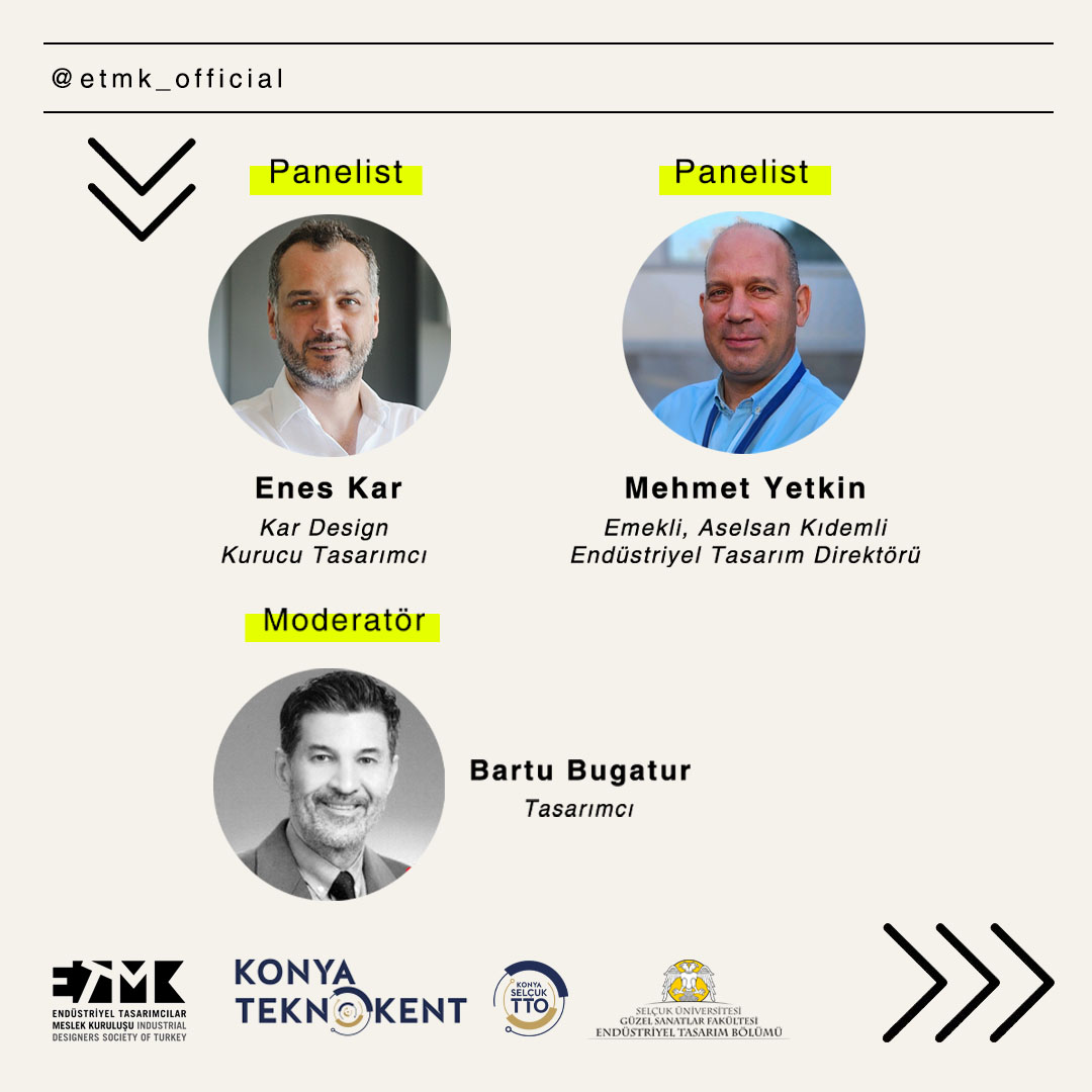 Makine ve Savunma Sanayi sektörleri özelinde tasarımın ve inovasyonun rolünü ele alacağımız bu buluşmada, Kar Design kurucu tasarımcısı Enes Kar ve emekli Aselsan kıdemli endüstriyel tasarım direktörü Mehmet Yetkin deneyimlerini paylaşacaklar. Buluşmada tasarımın stratejik konumunu değerlendirecek ve gelecek perspektiflerini birlikte tartışacağız.