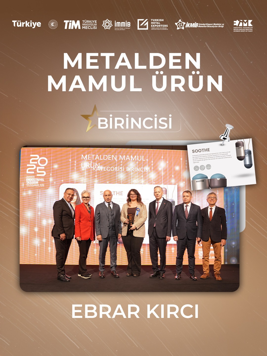 İstanbul Maden ve Metaller İhracatçı Birlikleri (İMMİB) koordinasyonunda ve ETMK'nın desteği ile ; İstanbul Demir ve Demir Dışı Metaller İhracatçıları Birliği (İDDMİB) ve İstanbul Kimyevi Maddeler ve Mamulleri İhracatçıları Birliği (İKMİB) tarafından 21 yıldır düzenlenen Endüstriyel Tasarım Yarışmaları’nda dereceye giren genç tasarımcılar ödüllerine kavuştu.