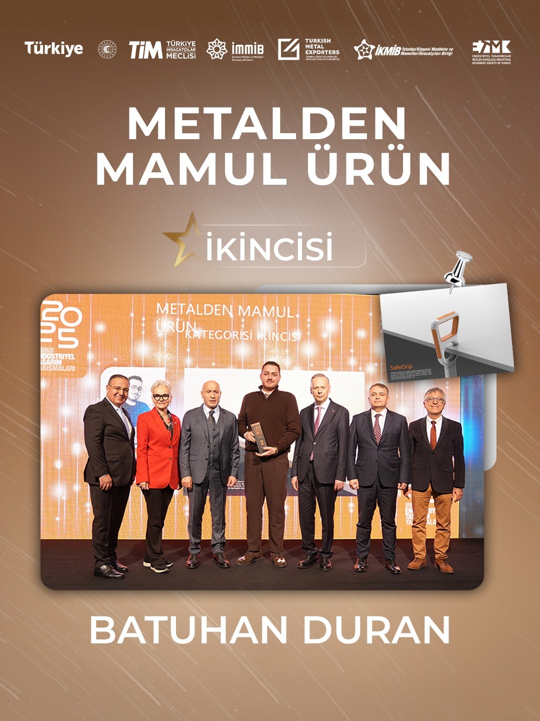Bu yıl “Öngörülemeyen Durumlar İçin Yaratıcı Çözümler ve Tasarımlar” temasıyla gerçekleştirilen yarışmada; Metalden Mamül Ürün ve Plastikten Mamül Ürün kategorilerinde yenilikçi projeler ödüllendirildi. Krizler, afetler ve günlük yaşamda karşılaşılabilecek beklenmedik durumlara yönelik geliştirilen çözümler; tasarımın yalnızca estetik bir unsur değil, aynı zamanda stratejik bir üretim ve ihracat gücü olduğunu bir kez daha ortaya koydu.
